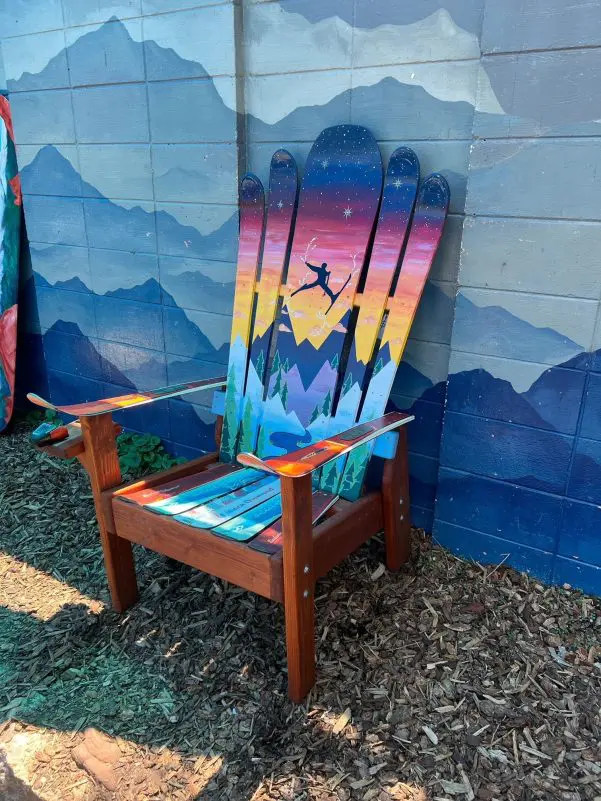 Our chairs are all hand made from scratch right here in Colorado from recycled skis, quality lumber and hardware, and lots of love and care! We’ve grown tremendously in quality and craftsmanship the past 5 years and offer a much higher quality product than we did in our early years. We make it look easy but our furniture takes a lot of time, attention to detail and many steps to complete and keep our customers happy.