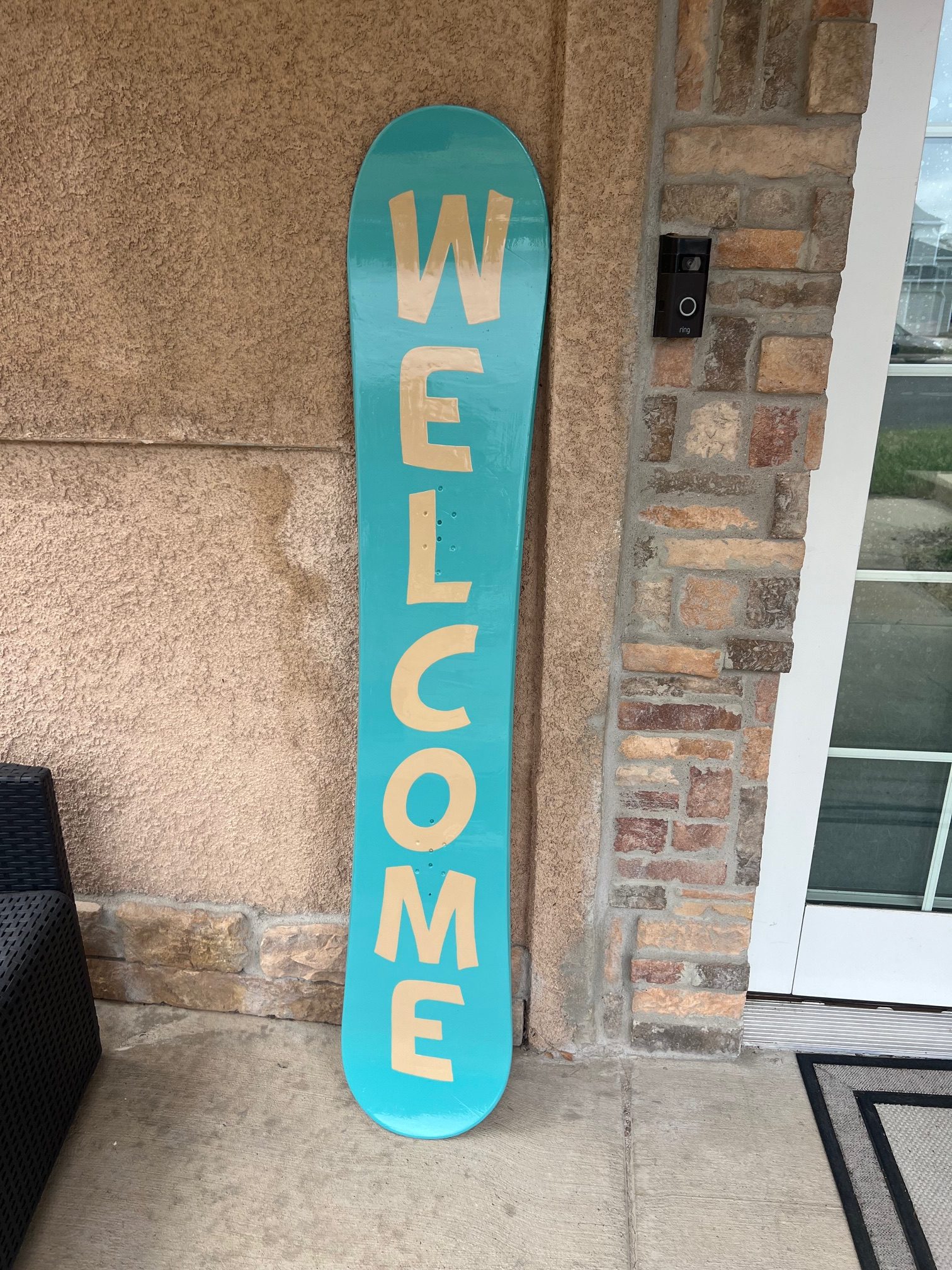 You pick the colors you want! Hand painted snowboard WELCOME wall art. Perfect for the front of any home or condo!
