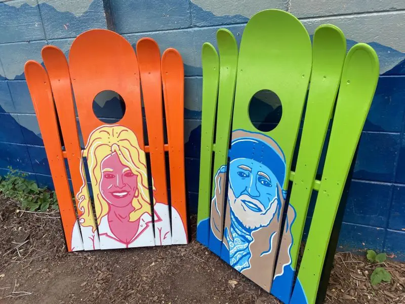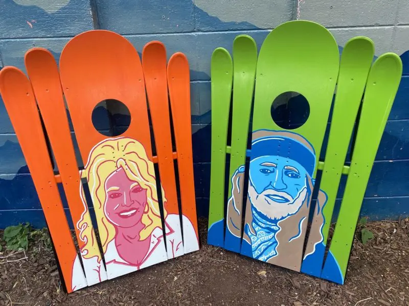Willie and Dolly Oil Painted Ski Cornhole Boards Set