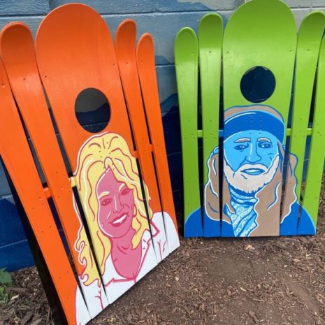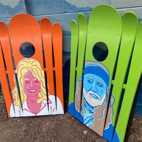 Hand painted designs like our Willi & Dolly Ski Cornhole Boards Set take time and are made to last in the elements. We hand paint almost all of our designs with exterior oil paint and make sure you’ll get a product that’s both beautiful and durable. We charge $75/hour for customization so think about what you’d like to add to your unique design and we can add just about anything you can dream up!