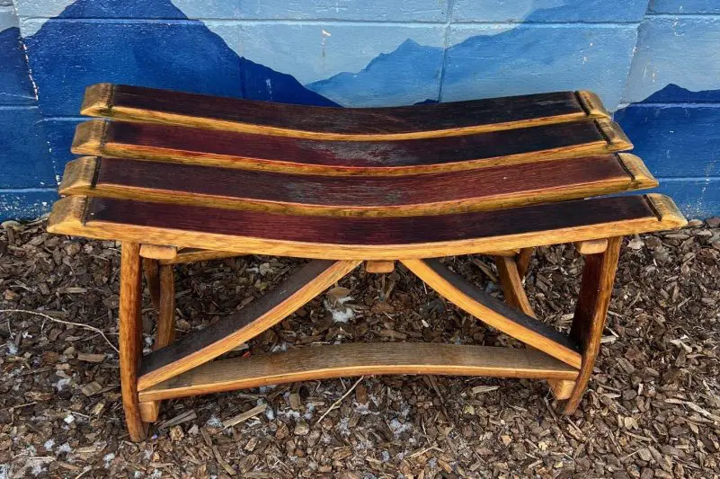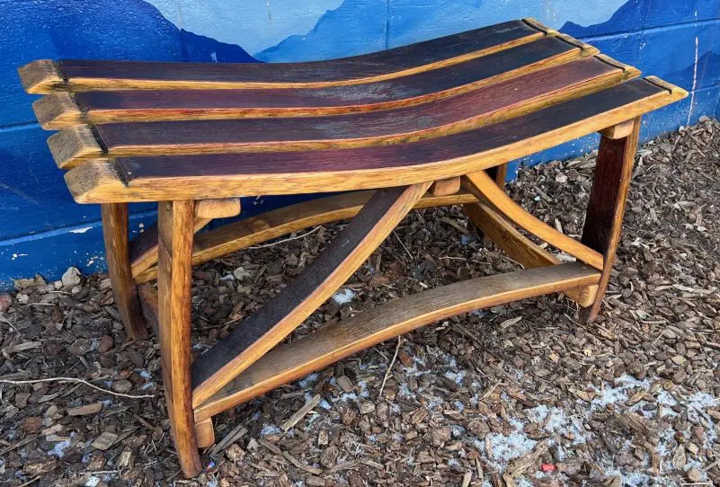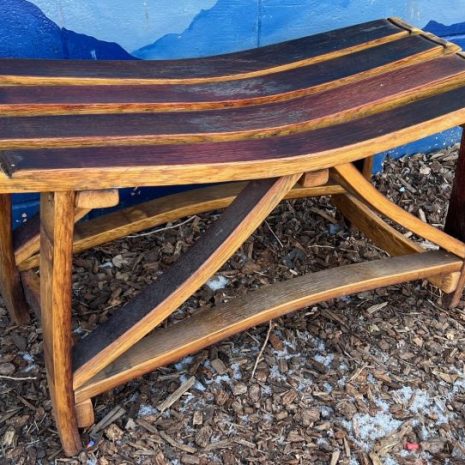 Wine Barrel Adirondack Chair, perfect for your deck, patio, fire pit area or any outdoor seating area, durable, upcycled and hand made in Colorado!