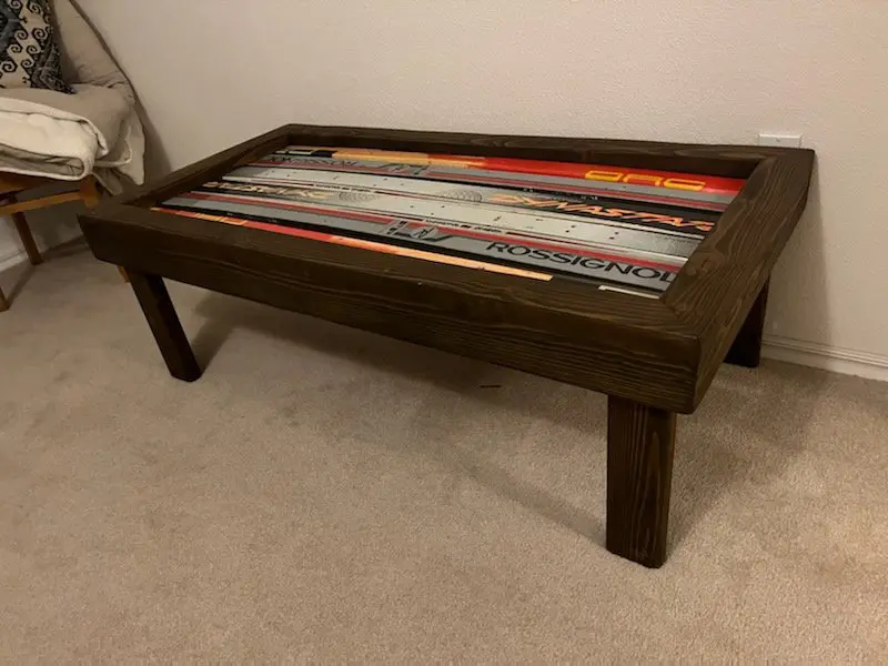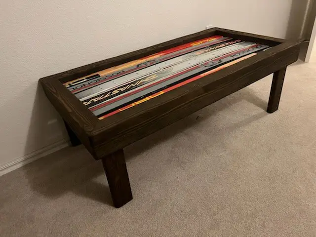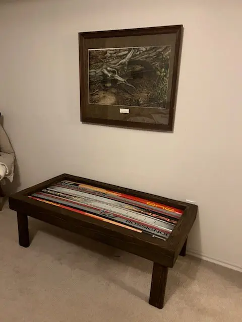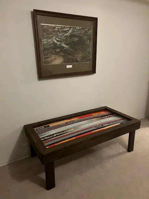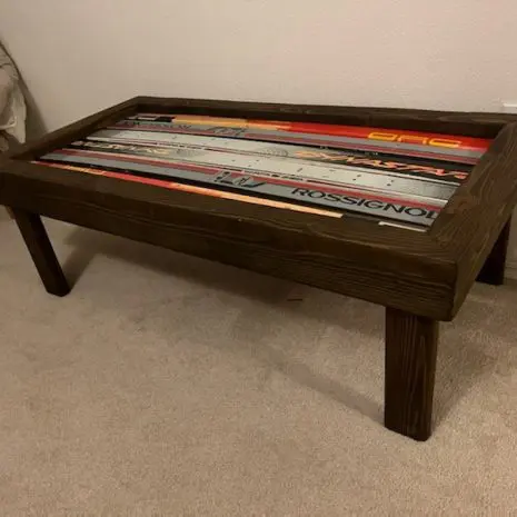 Our popular Ski Coffee Tables are always a hit. They’re the perfect size to complement your living room, with ample room to set down your phone, drinks, books, and dinner plates. They have a 300lb. weight capacity so are sturdy enough to sit on – making them an ideal boot bench for your hallway! You can also bring one outdoors and use it as a side table between your ski chairs.