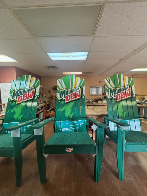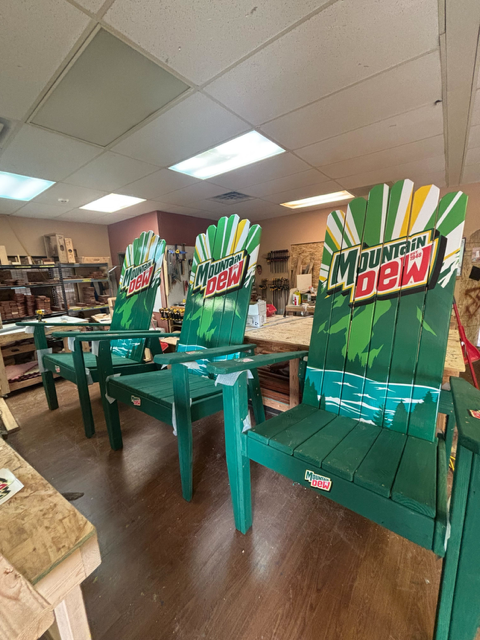 - Constructed in Colorado from a sturdy Douglas Fir base. All chairs include a custom cup holder. Big enough for a stein.